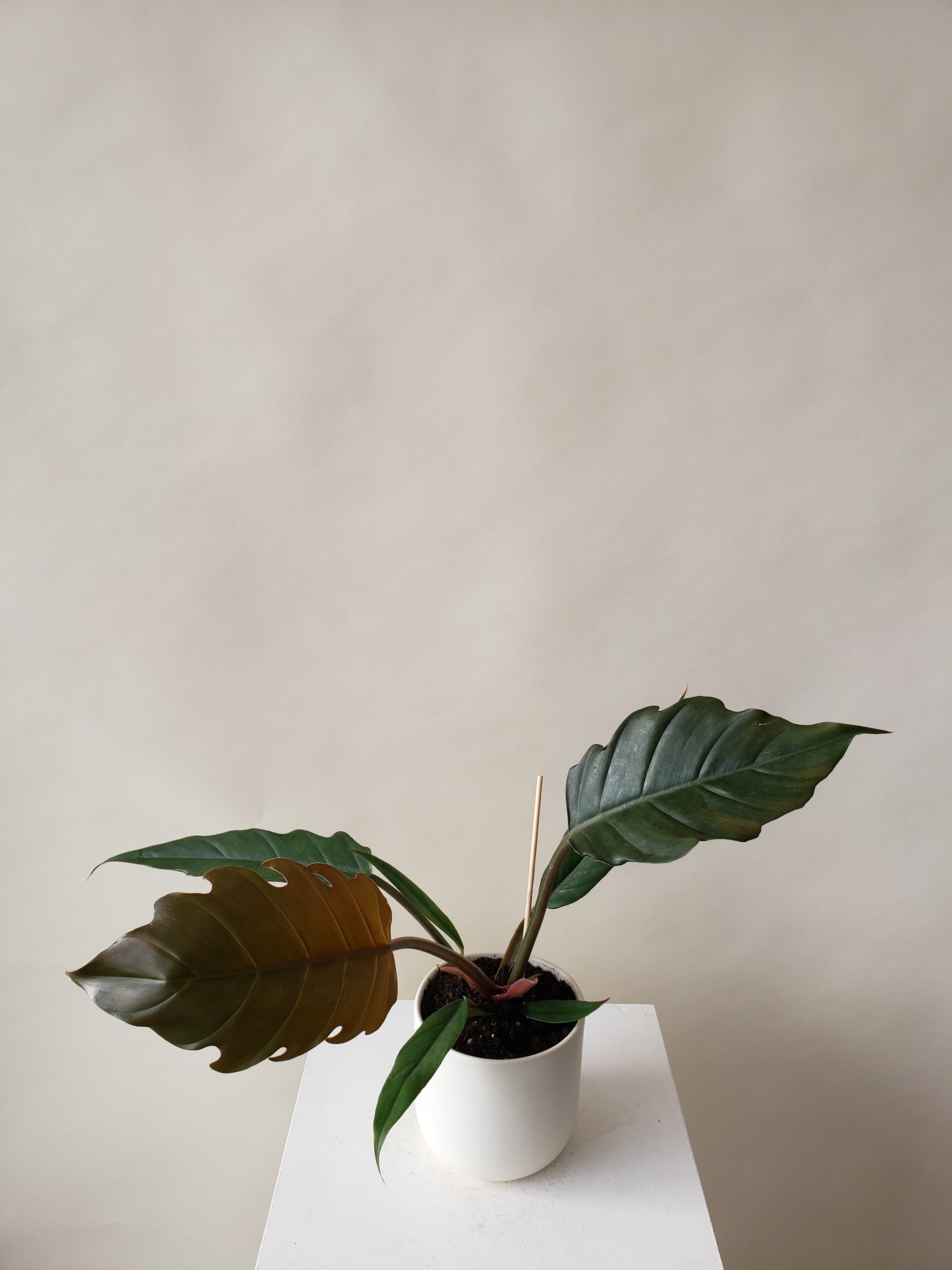 A 5" potted Philodendron 'Pluto' plant in our cream/white planter or cement planter.