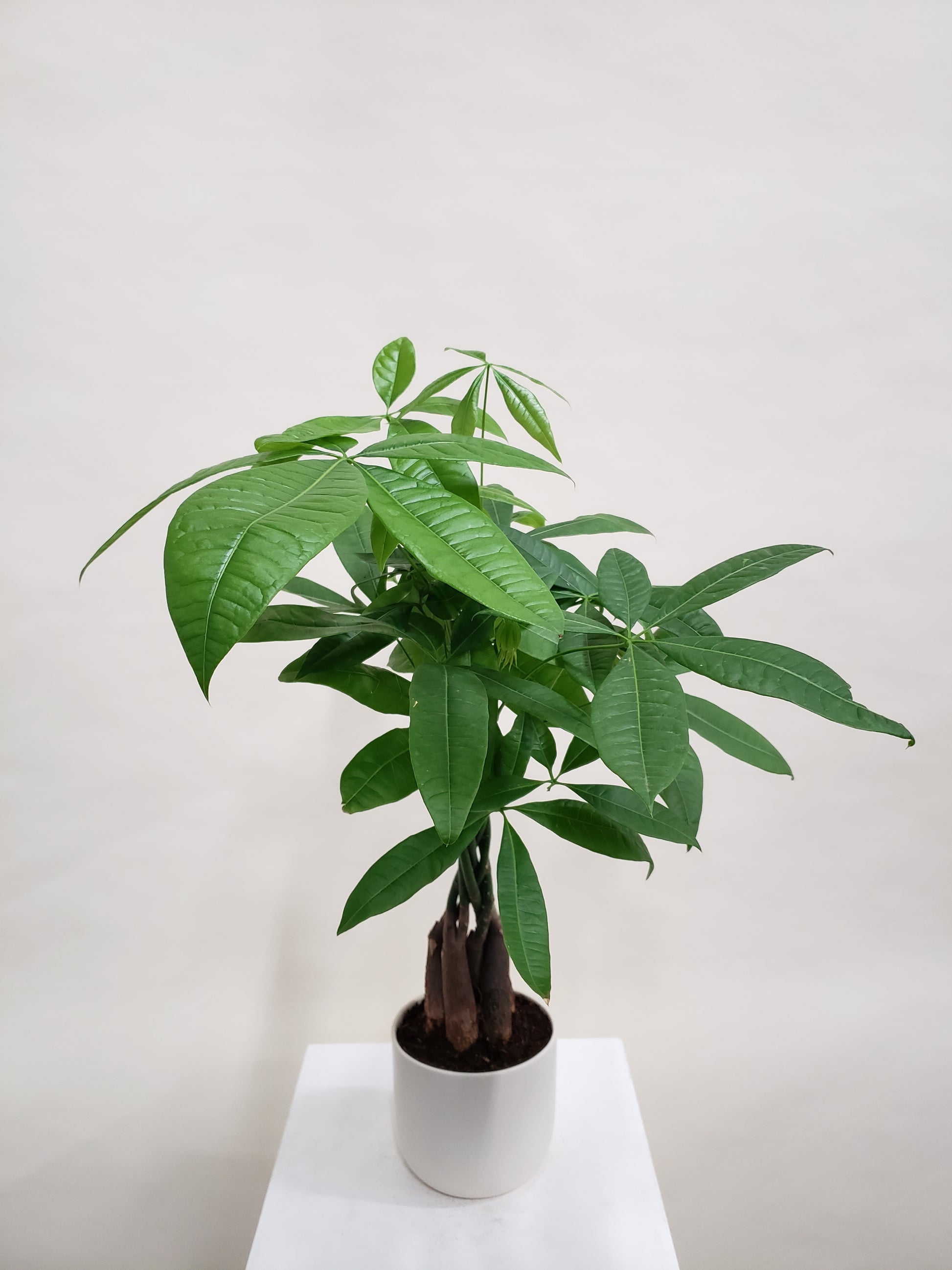 A 7" potted Money Tree Plant in our cream/white planter or cement planter.