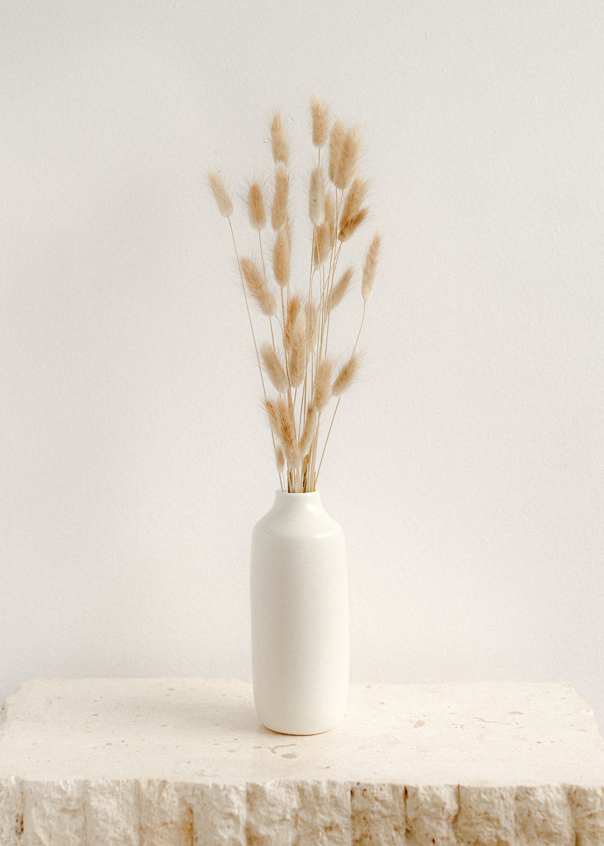 25 stems of Natural Bunny Tail displayed in the Mika Vase. Available in 25 or 50 stems bundles. For 50 stems bundle, we suggest going with the Kaja Vase.