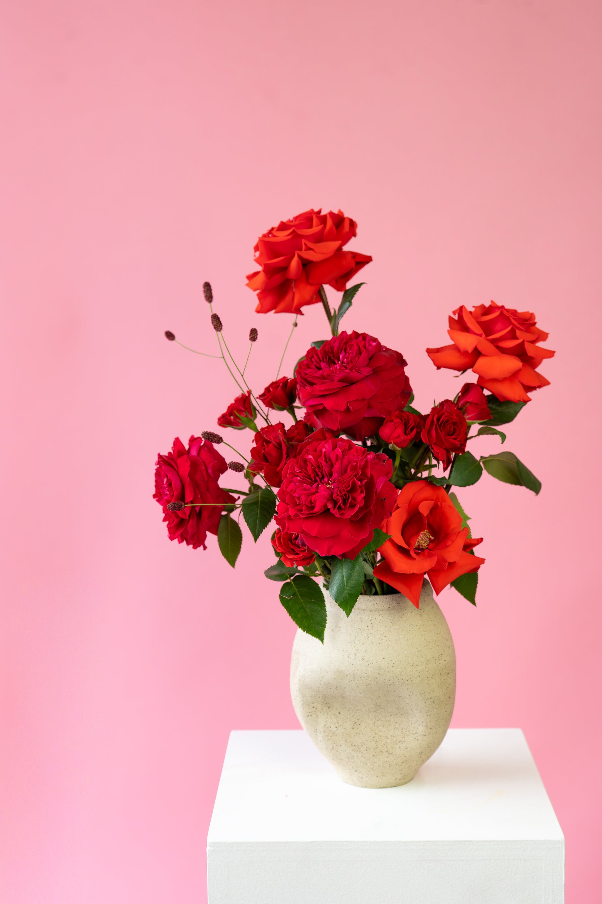 Our HUG Arrangement is made of thoughtfully curated seasonal blooms and is ready to gift for valentines. Each HUG vase is handmade by Vancouver Ceramics, no two pieces are the same!