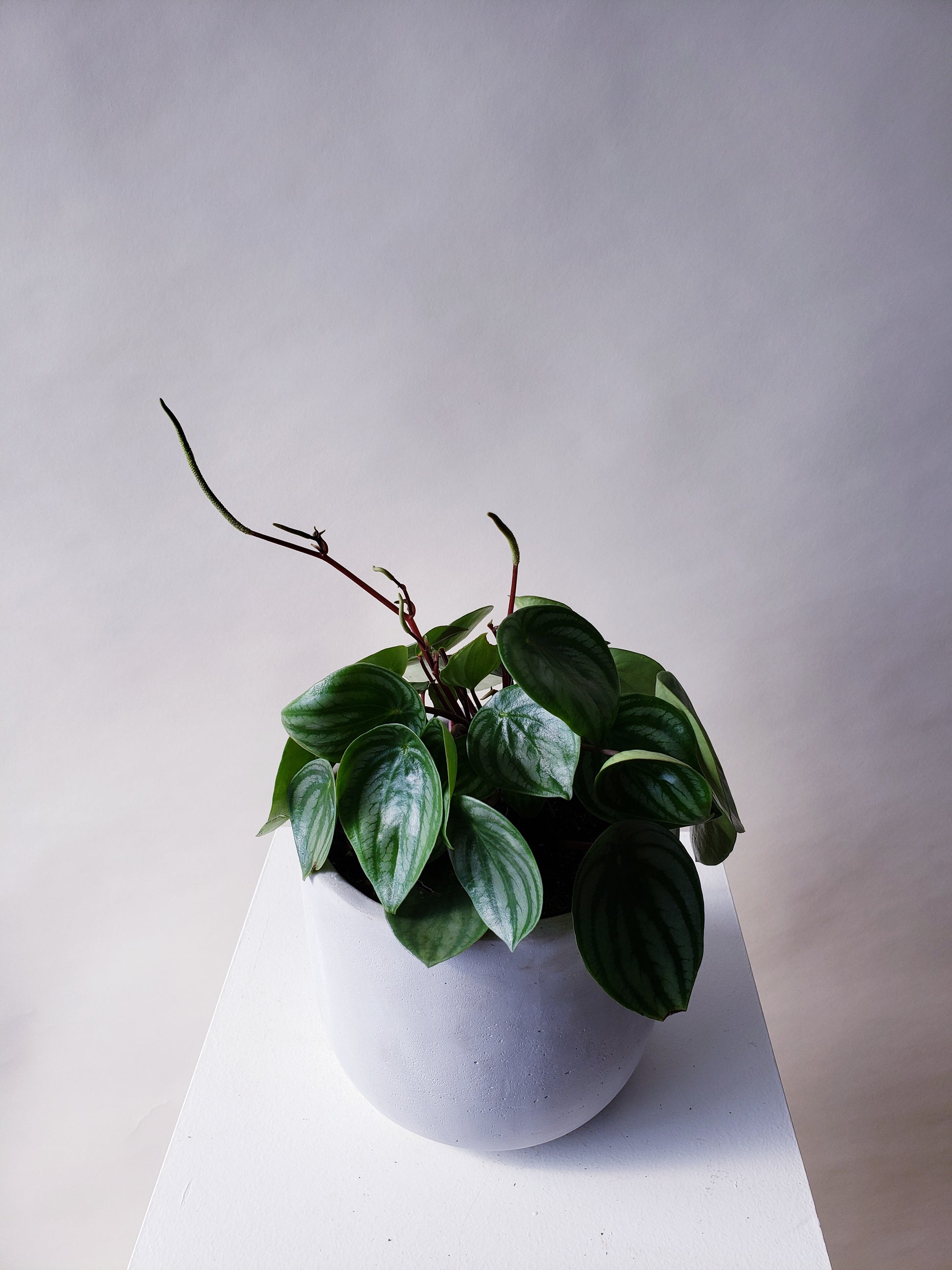 A 5" or 7" Potted Peperomia Watermelon Plant in our cream/white planter or cement planter.